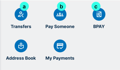- Pay Someone (b): You can use the Pay > Pay Someone feature to pay from your accounts into an external Australian account (either another person or your own) using their BSB and Account Number.