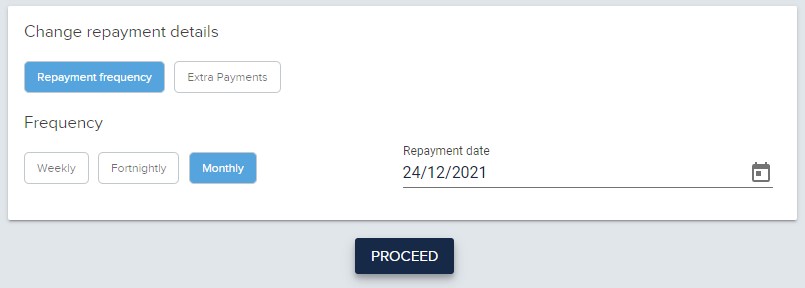 Note, if your account is Interest Only (IO) your repayments can only be monthly.