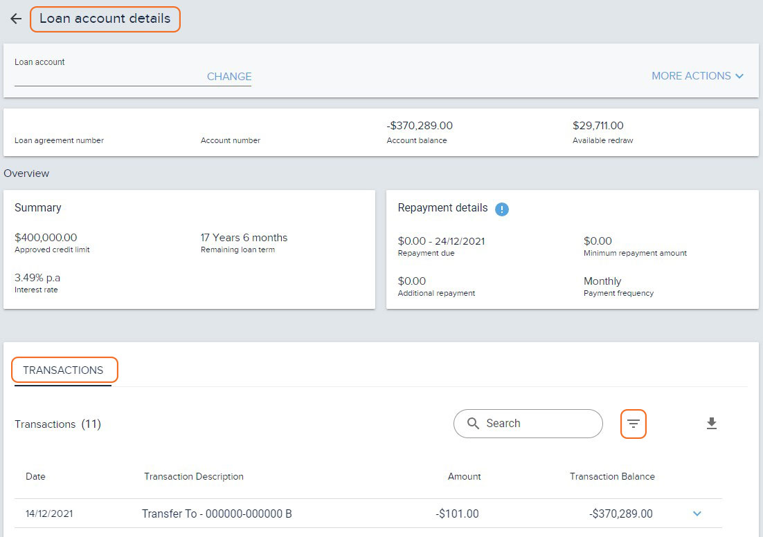 - You can view your transaction listing from the ‘Loan account details’ under the heading ‘Transactions’.