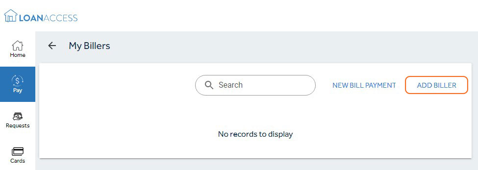 - Within LoanAccess, you can ‘add Biller’, ‘modify’, or ‘delete’ saved Billers from your Biller list. To do this, navigate to the ‘Pay’ menu and select ‘My Billers’.