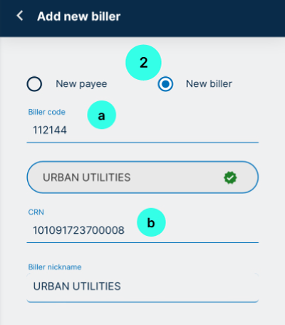 - You can add a Biller from the ‘My Billers’ page, then click on ‘Add Biller’ and enter the details for the new biller.